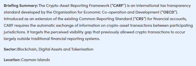 On , the Cayman Islands government published the Tax Information Authority (International Tax Compliance) (Crypto-Asset Reporting Framework) Regulations, 2025, and amendments to the Common Reporting Standard (CRS), formalizing the jurisdiction’s commitment to the Organisation for Economic Co-operation and Development (OECD)‘s global tax transparency initiatives. These regulations will apply from the , with Cayman Reporting Crypto-Asset Service Providers (Cayman RCASPs) required to begin data collection from , for new users. Existing Cayman RCASPs must register with the Department for International Tax Compliance (DITC) by , while new providers have until of the following year to register.